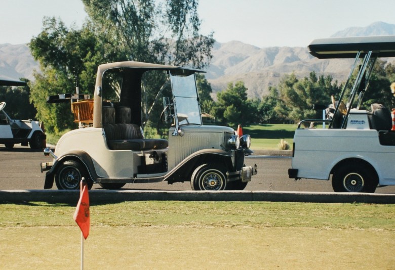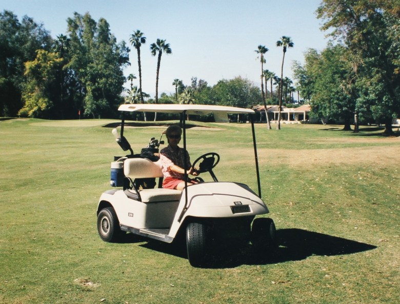 Patrik ville spela golf, och jag följde med. Titta, vilken läcker golfbil!