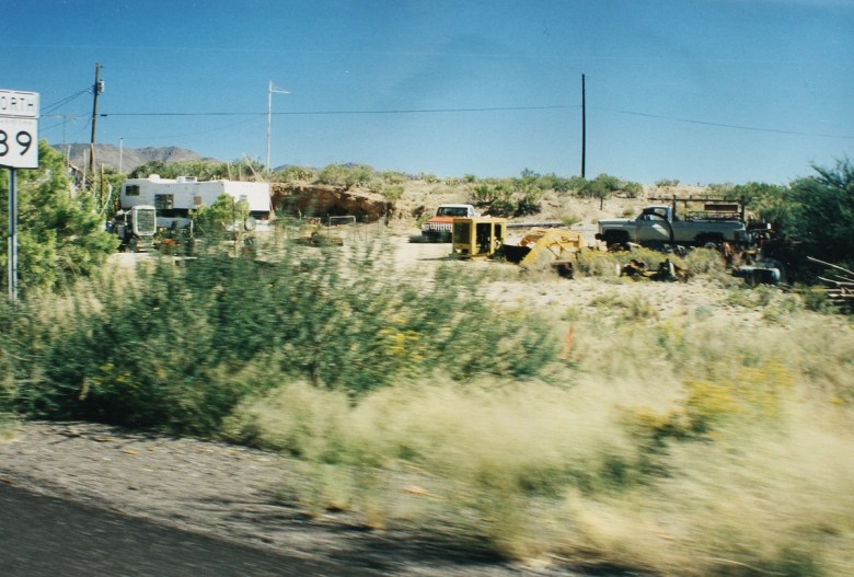 Genom bilrutan fotade jag en plats där man uppenbarligen bodde i sin husvagn med skrot och bråte runt omkring. Trailer parks såg vi många, och särskilt en gjorde mig mållös. Mitt ute i ingenstans stod det husvagnar uppställda och det gick omkring människor på platsen. Ut från taket på en av husvagnarna hade man lagt en vanlig plåtskiva och skrivit ”Café” på. Uppenbarligen hade ett antal människor skapat sig en boplats där ute i ödemarken. Jag vågade tyvärr inte fota.