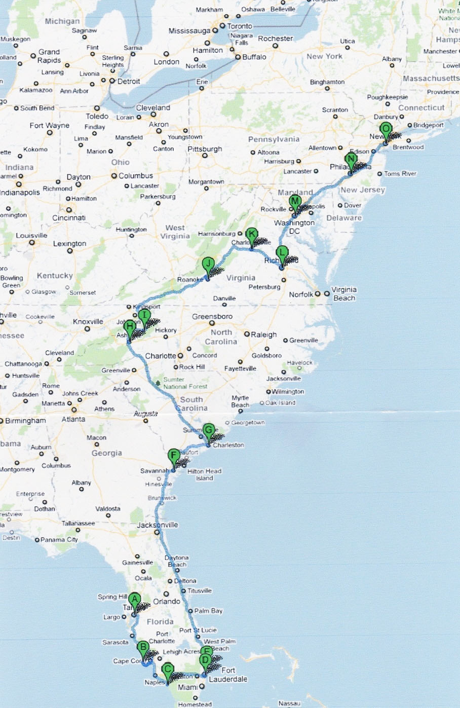 Det tog sin lilla tid att komma hit, men det var det värt! Nio timmars flyg till världens näst mest trafikerade flygplats, nämligen O’Hare International Airport i Chicago. Därifrån två timmars transfer med tåg till en annan terminal på flygplatsen + drygt två timmar med flyg till Tampa i Florida. Sista sträckan var inte rolig… Flygplanet var det skraltigaste jag flugit med, till och med stolsitsarna lossnade..! Vid starten skakade och mullrade det så att man knappt kunde höra sig själv…