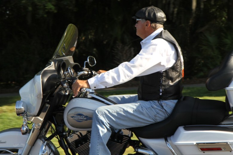 Florida är ju känt för att locka pensionärer, och för att vara prydligt och tillrättalagt. Det var också det intrycket vi fick ganska snabbt. Den här solbrände gentlemannen var jag bara tvungen att smygfotografera… Vi såg honom svänga in mot en golfbana, såklart..!