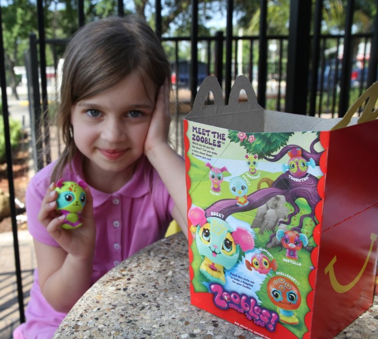 Och vi följer dem förstås… särskilt till McDonald’s, eller Mickey D’s som det kallas här, eftersom tjejerna äter ordentligt då, och dessutom får en sådan här liten rolig leksak i sitt Happy Meal.