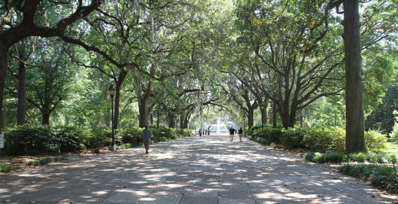 Och så här ser det ut när man går i någon av de många parkerna här. Så mysigt med de lummiga träden med grenar som bildar portaler.