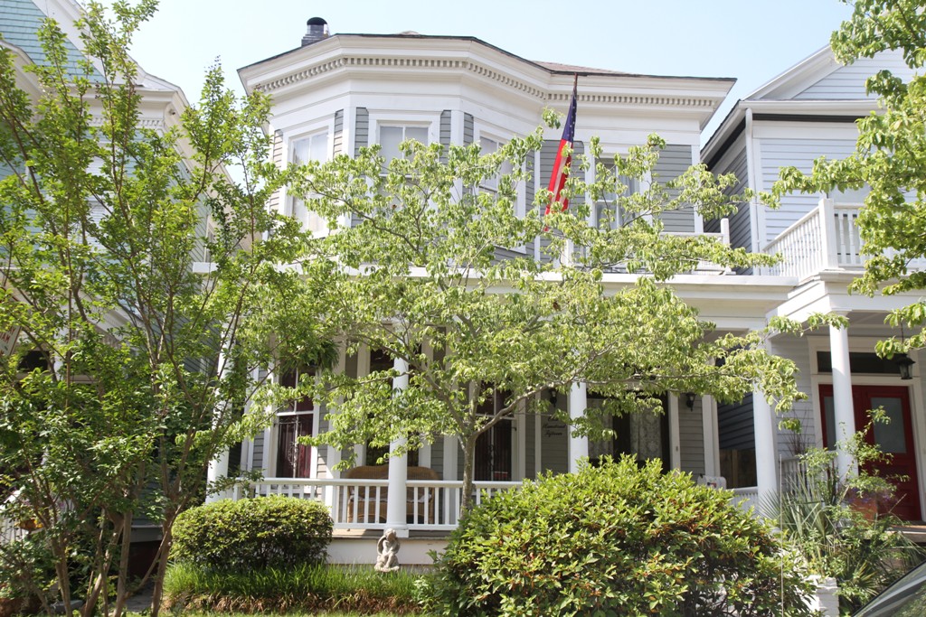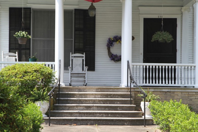 Ett sydstatshem med den amerikanska flaggan och allt. Den amerikanska flaggan ser man ofta här.