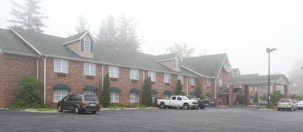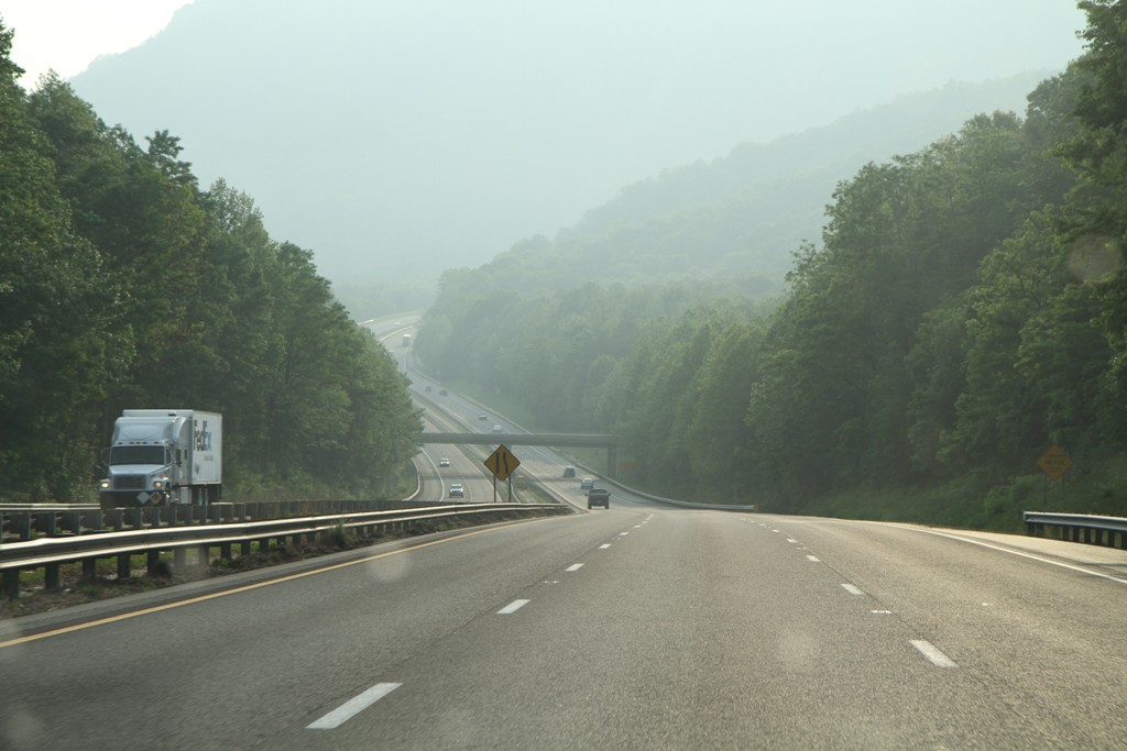 Vi bestämde oss för att checka in här, på Mountain Inn & Suites som ligger precis i kanten av ett berg. Man känner sig onekligen liten här… Och dessutom kom det rapporter på nyheterna att det skulle bli severe thunderstorms här där vi är, i Hendersonville County. Då kände jag mig riktigt svensk, van vid det trygga och säkra. Vi var ivriga att komma iväg på morgonen, men kunde inte åka ifrån hotellet förrän vid nio på grund av tät dimma här i bergstrakterna.