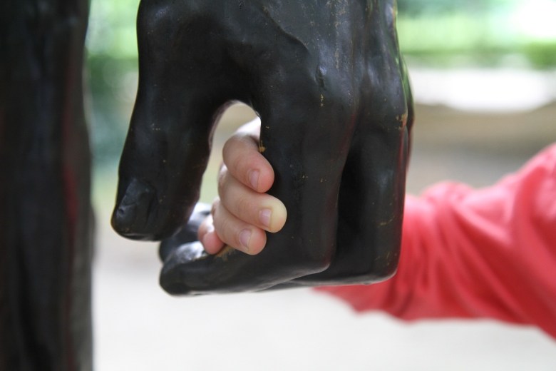 Vi var väldigt förbryllade över detta när vi var i Paris på Musée Rodin. När vi kom hem kollade jag upp det. Tydligen är det en medveten taktik från Rodin att kraftigt förstora händer och fötter. Han ville inte idealisera och försköna människorna genom skulpturerna utan tvärtom förvränga händer och fötter för att göra dem mänskliga.