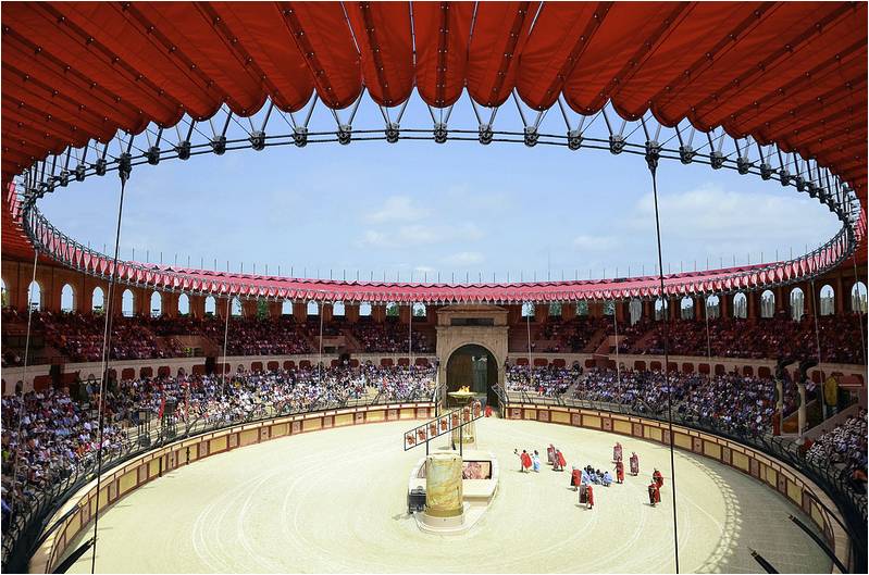 Tänk er att läktaren var byggd av vit, blänkande marmor. Ibland var det ett golv av trä med sand, som skulle suga upp blodet, ibland fylldes arenan med vatten för sjöslag. Under golvet väntade fångar, djur och gladiatorer som skulle strida. Fångarna var brottslingar som fördes in på arenan med bakbundna händer, och alltså inte hade en chans att klara sig. Det är svårt att förstå hur man överhuvudtaget ville se de här skådespelen, som de kallades. För mig framstår det mer som slakt.