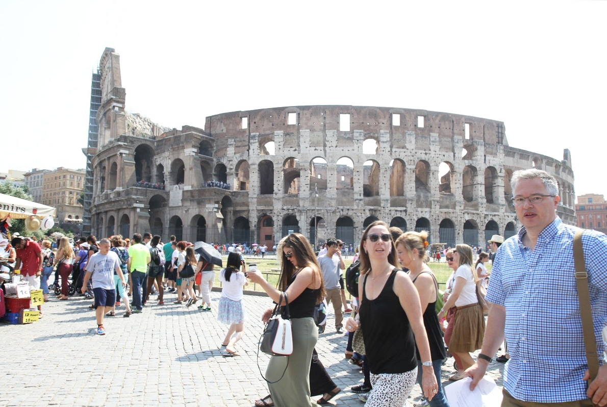 Vi var på plats tidigt på morgonen och hade ju dessutom bokat guidning, så vi kunde gå direkt in i Colosseum. Så här mycket folk var det efter några timmar, när vi gick.