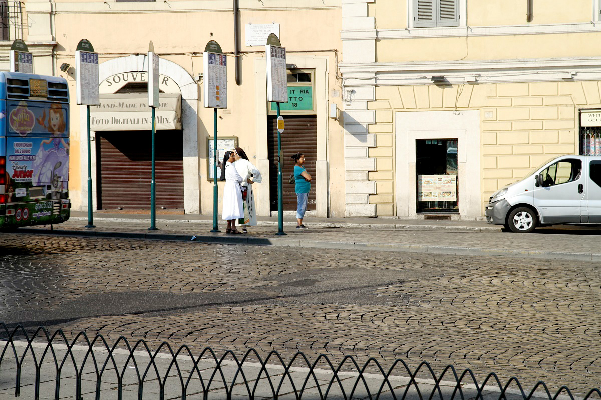 Vi hann titta en del på omgivningarna medan vi väntade, och såg de första nunnorna av många, många under vår Italienresa.
