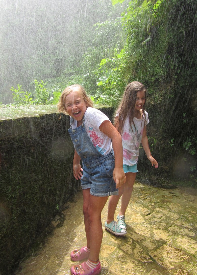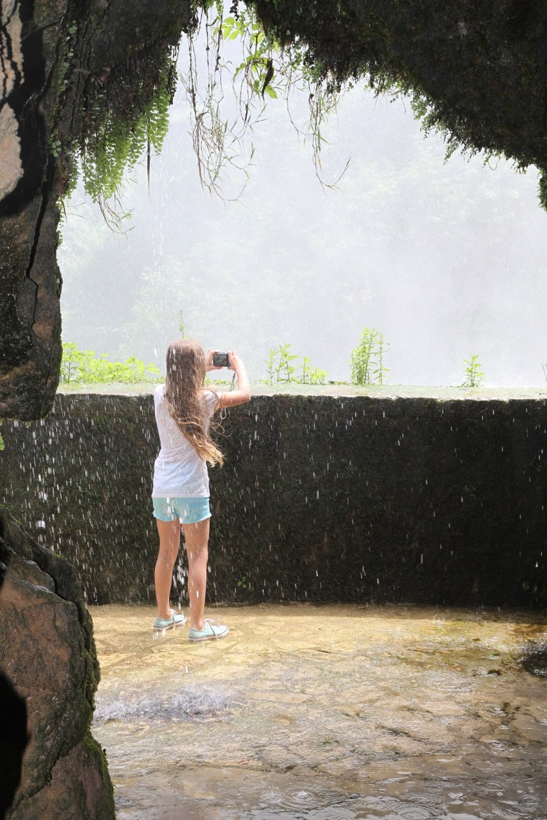 Vi brukar inte planera in så många särskilt barnanpassade aktiviteter. Det mesta blir roligt i alla fall, om man är litet flexibel och beredd att lägga mer tid på något helt annat än det man från början planerat. Som att det visserligen var roligt att se vattenfallet, men behållningen var att göra vandringen nedför stigarna till ett äventyr. Att gå nära vattnet och bli helt nedstänkt. Att vandra genom bergsgrottorna. Att klättra i träden.