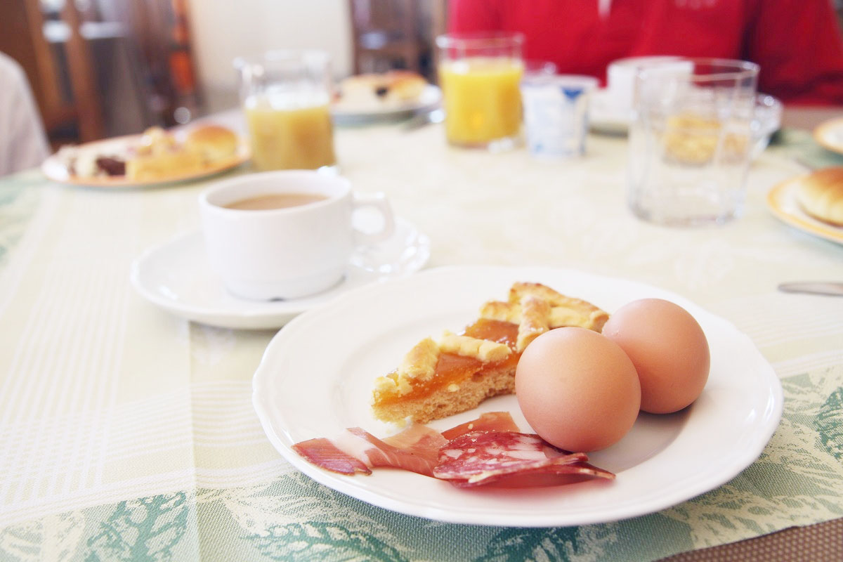 Det vore intressant att veta om italienare verkligen själva äter till frukost det de serverar oss turister..? Dignande bord med go’fika är överrepresenterat. Tjejernas frukostar spårade ur redan första dagen. De valde tiramisu, brownies, croissanter med chokladfyllning, småkakor och fruktpajer. Och vi lät dem ta seden dit vi kommit.