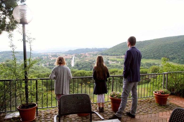 Ett väldigt modernt hotell, inte speciellt lantligt toscanskt, så som vi skulle bo senare. Däremot var det fritt från gröna ödlor på väggarna utanför, och det var som sagt modernt, vilket kändes skönt som en inledning på resan.