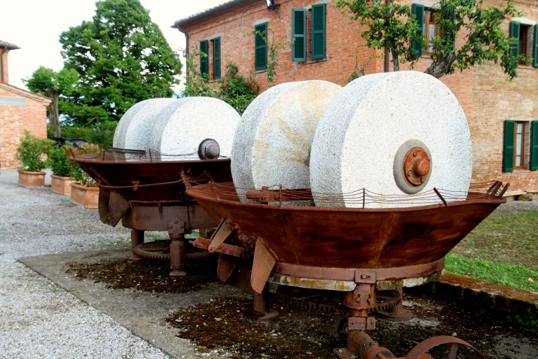 Ute på gården stod den här maskinen, som jag tror är en gammal vindruvspress, eller är det något helt annat? Någon som vet?