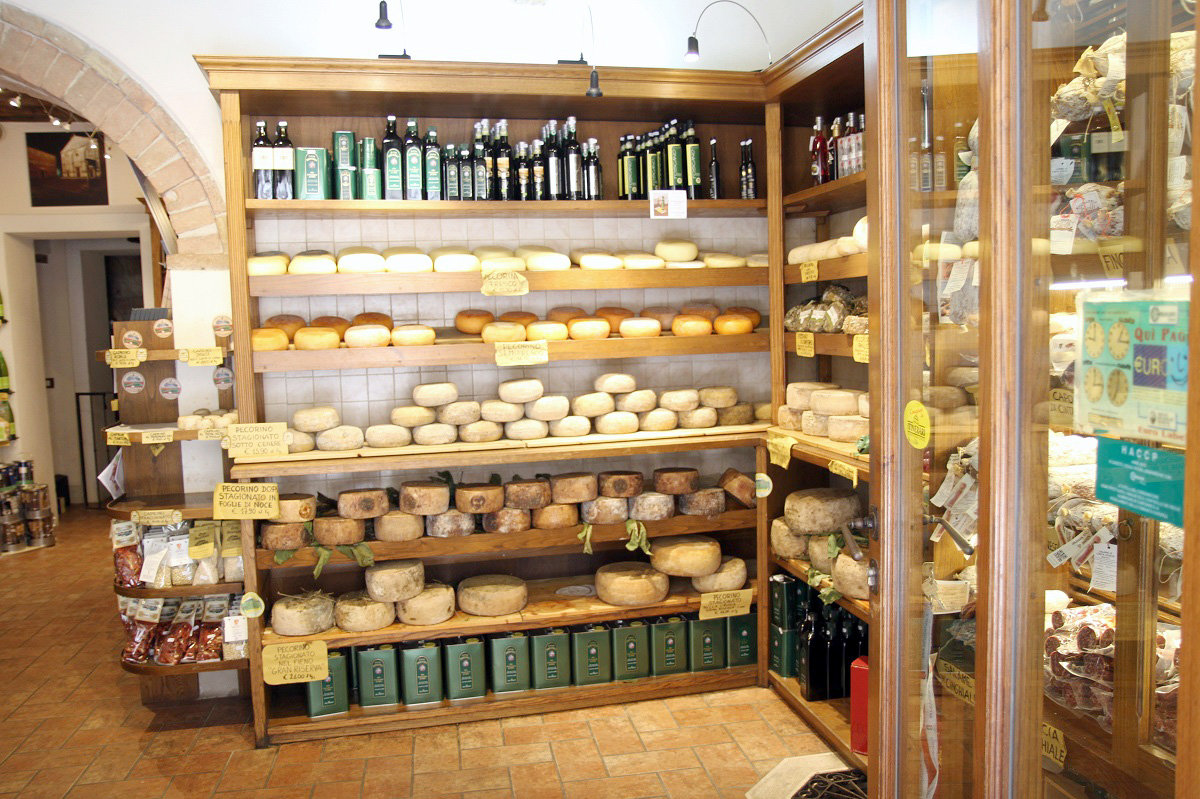 I Pienza tillverkas pecorino och det fanns en hel del ostbutiker med spännande skyltning.