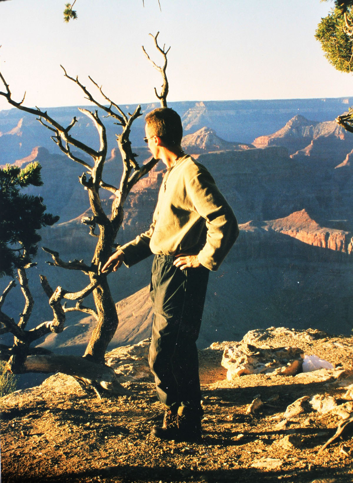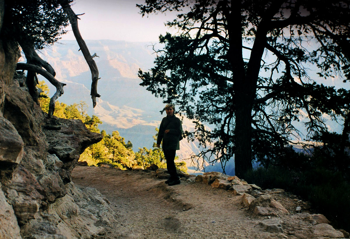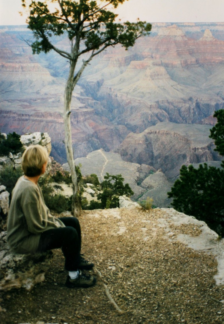 Vi kom fram till Grand Canyon, North Rim, på kvällen när ljuset var alldeles fantastiskt. Vi ville få se en skymt av underverket innan vi skulle sova, och tog oss till en plats där det stod andra människor. Ett kort ögonblick tänkte jag att det här antagligen var överreklamerat. Men när vi kom fram till kanten och tittade ut…