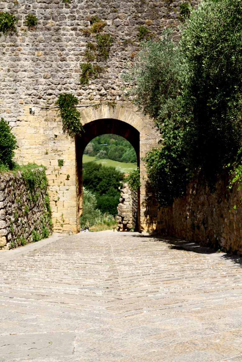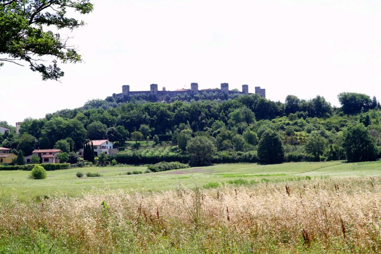 Vi insåg först inte att det här fortet verkligen var den kända Monteriggionibefästningen, med de 14 tornen och mur runt hela staden. Fortet byggdes i början av 1200-talet som en skyddande befästning i kriget mot Florens. Under både den här och förra årets resa i Italien har vi fått höra en del om kriget mellan Siena och Florens. Och så hamnade vi, mer eller mindre av en slump, mitt på en av det krigets viktigaste strategiska platser!