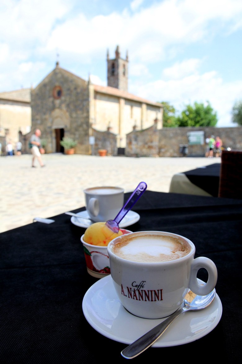 Vi hamnade mitt i en bröllopsfotografering och det fanns en del turister, särskilt cyklister, men precis som under hela vår resa i Toscana (bortsett från Florens) var det väldigt lugnt på alla platser vi besökte. Ingen stress och inga skrikande barn. Samma sak vid poolen på de platser vi bodde, och på restaurangerna. Det var lugnt och trivsamt. Varför är det så högljutt på svenska turistattraktioner och i svenska shoppingcentrum..??