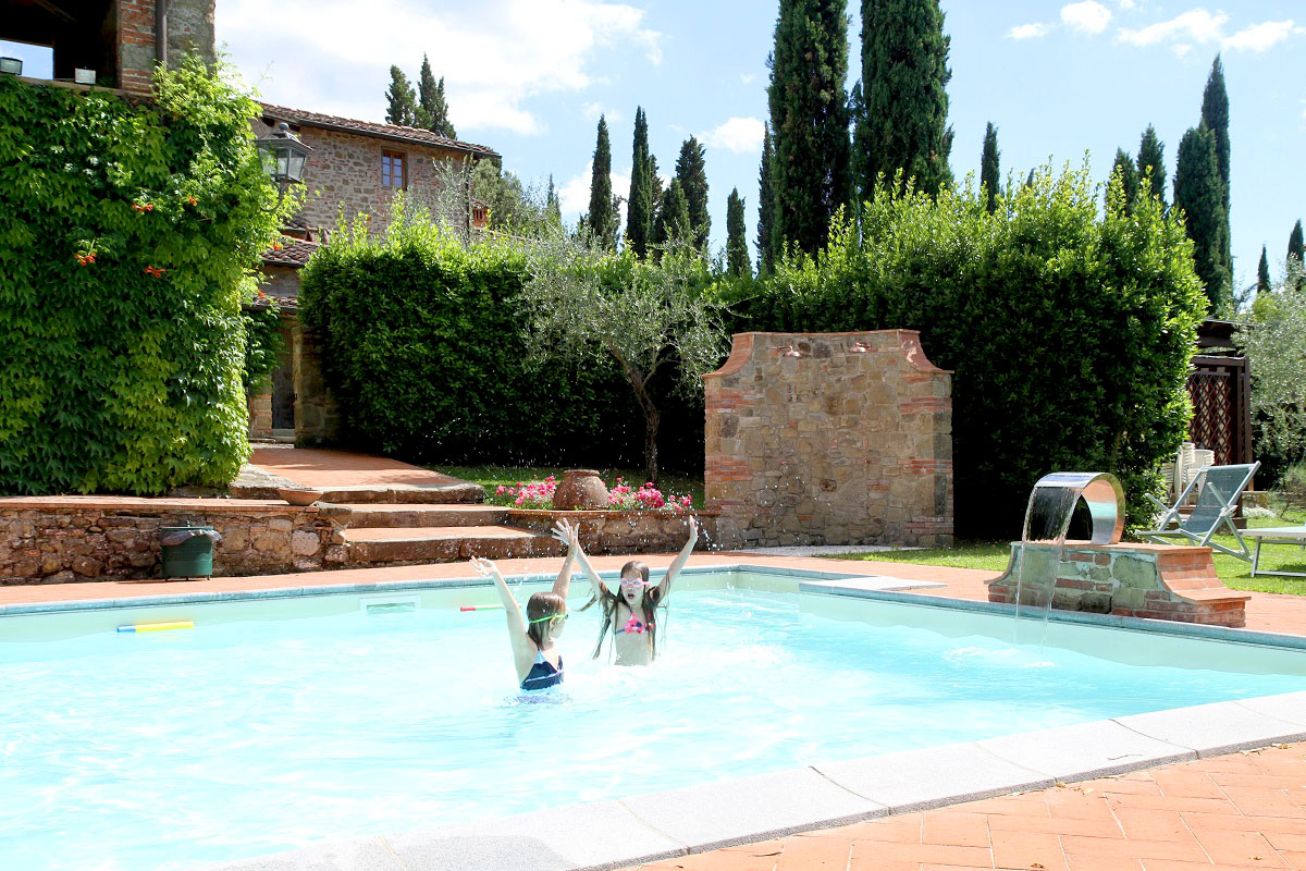 Efter tre underbara dagar i området kring Montepulciano åkte vi vidare norrut, mot Villa Barberino. Vi hann knappt installera oss i gästhuset där vi skulle bo förrän Jackie och Bella var på väg till poolen :)