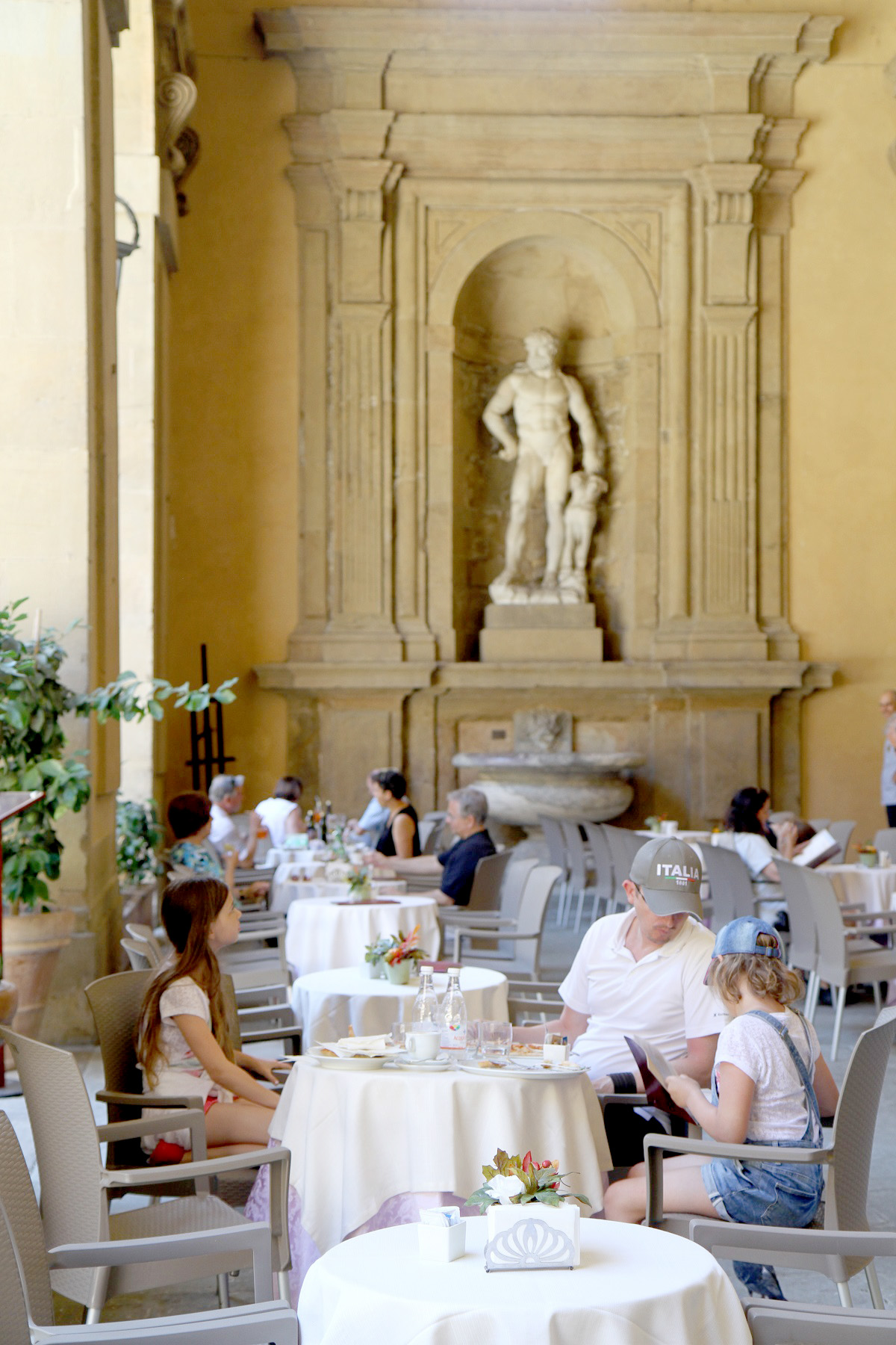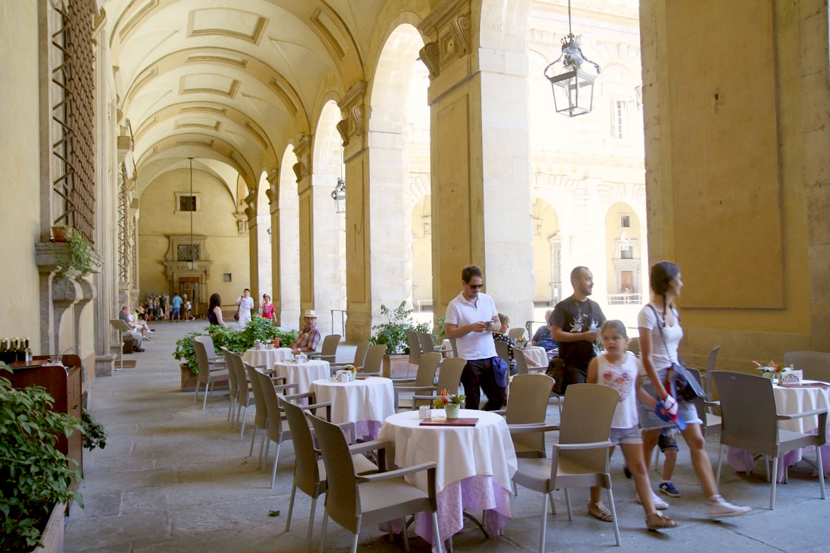 När vi gick ut från palatset insåg vi hur pampigt det var. Det är tydligen av de största byggnaderna i Florens. Framför palatset finns en stor amfiteater med bevarade bänkrader som syns till höger och vänster på bilden.