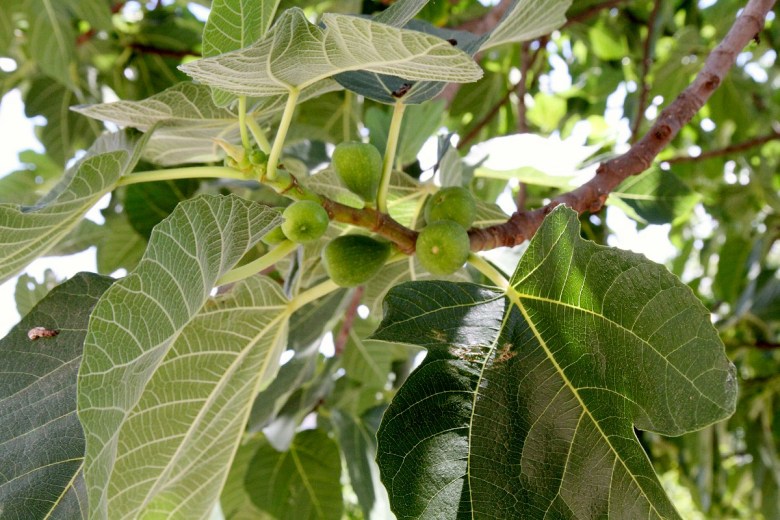 … ett fikonträd :) Att se hur fikon växer på träd tyckte Bella var spännande. Nästan lika spännande var det att se en larv på ett av bladen.