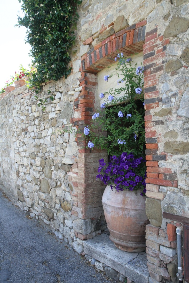 En vanlig syn i italienska städer: sten (förstås) och galler för fönstren. Krukor med blommor som ärligt talat inte så ofta är gröna och frodiga, utan ganska spretiga. Tvätt är också något man ser hängandes på balkonger eller som här på en lina utanför fönstret. Och så alla dessa sladdar och kablar… Italienarna är verkligen inget vidare på att göra snygga och diskreta dragningar av sladd.