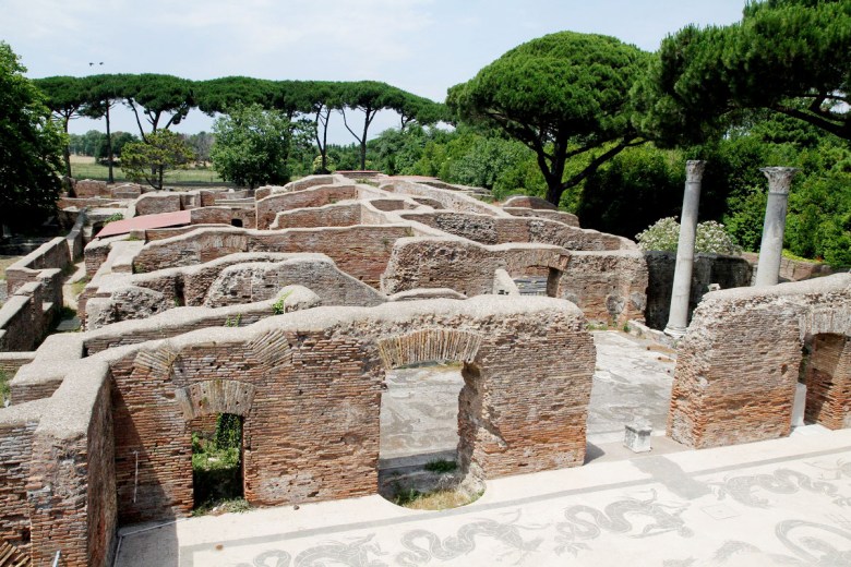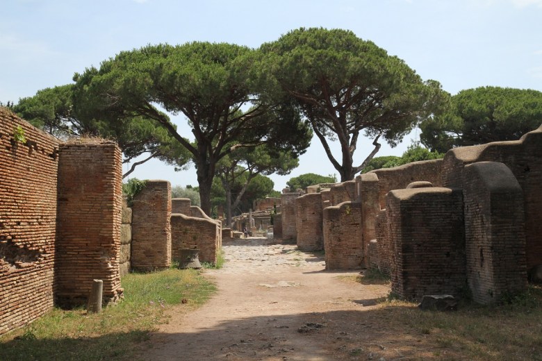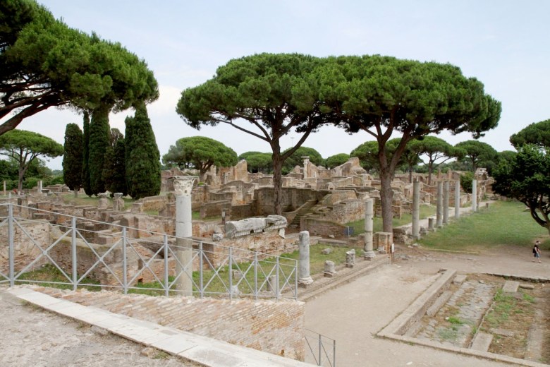 Här i Ostia fanns det mängder med de klassiska paraplypinjeträden, både då och nu.