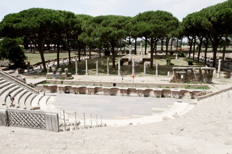 Till skillnad från Pompeji, som var en stad dit de välsituerade begav sig, så var Ostia Antica en arbetarstad. Men en teater hade man. Italienarna förstår sig på betydelsen av kultur. Rester av den här teatern stack upp ur jorden och det var det som gjorde att man började gräva fram ruinerna av den gamla staden.