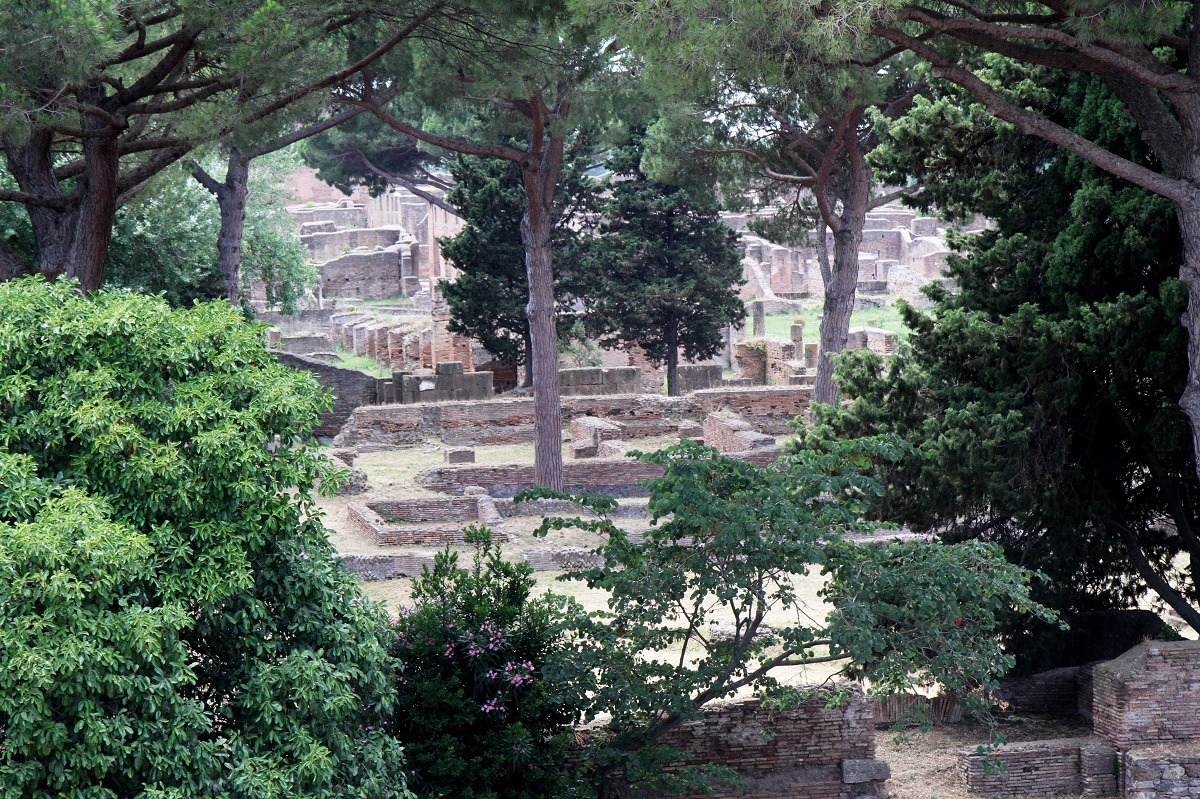 Här i Ostia fanns det mängder med de klassiska paraplypinjeträden, både då och nu.