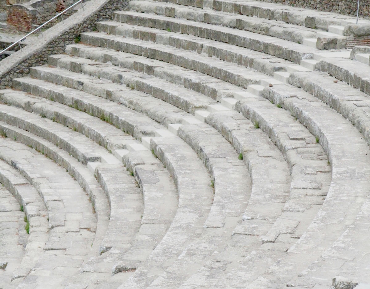 Till skillnad från Pompeji, som var en stad dit de välsituerade begav sig, så var Ostia Antica en arbetarstad. Men en teater hade man. Italienarna förstår sig på betydelsen av kultur. Rester av den här teatern stack upp ur jorden och det var det som gjorde att man började gräva fram ruinerna av den gamla staden.