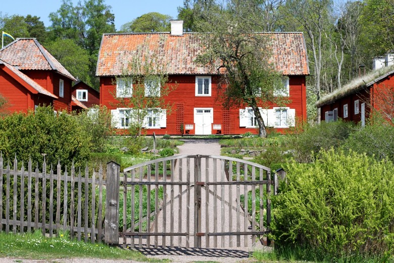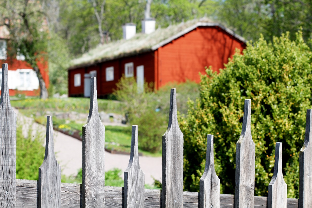 Här bakom gallerstaketet ligger gården Hammarby, som är en av Sveriges mest stilriktigt bevarade 1700-talsgårdar. Väldigt snyggt snidat staket, eller hur? Det var antagligen sådant man pysslade med under mörka höst- och vinterkvällar, istället för att surfa runt på Internet.