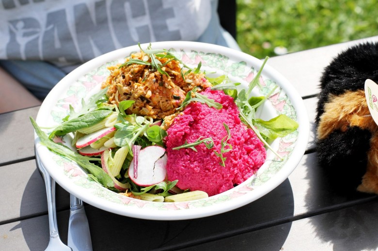 Jackie var modig och valde vegansk lunch med pasta, rödbetshummus och en röra av kronärtskocka. Det slutade med att vi bytte tallrikar. Inte mig emot, det var otroligt gott och jag undrar om jag ätit kronärtskocka på det här sättet tidigare. Det måste jag absolut göra fler gånger. I butiken köpte Jackie ett marsvin. Vad är det med gosedjur som gör att man aldrig ledsnar på dem, hur gammal man än blir och hur många riktiga djur man än har?
