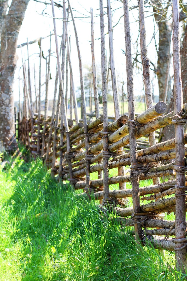 Runt hela Linnés Hammarby är det välgjorda och vackra gärdsgårdar. Solen föll så fint genom de smala, avkvistade grenarna. Jag tänkte först beskriva gärdsgårdsbygget som föråldrat. Men, nej, det kändes inte alls rätt. Föråldrad har en underton av att någonting är otidsenligt och förlegat, och det är ju verkligen inte gärdsgårdsbyggen. Visserligen har den tekniken använts i Sverige under imponerande 1000 år, men intresset för den gamla traditionen bara växer. Hantverk som gärdsgårdsbyggen imponerar på mig, det är aktningsvärd kunskap som jag är glad att den lever vidare.