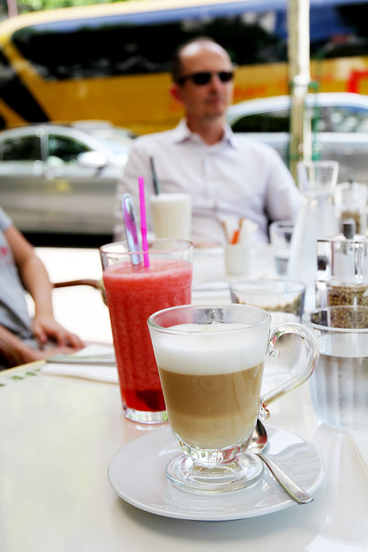 Litet mer avslappnad, nu när jag fått ta mina första bilder, känna att vi var på gång med resan och fått känna av den franska atmosfären, gick vi till en väldigt mysig restaurang med otroligt trevlig personal; Café du Trocadéro, alldeles nära Eiffeltornet med utsikt över folklivet. Här var kaffet riktigt gott. Fransmännen har dock inte samma kaffekultur som italienarna. Jag lärde mig snabbt under vår resa att inte beställa cappuccino, den var alldeles för söt, men café au lait var oftast ok.