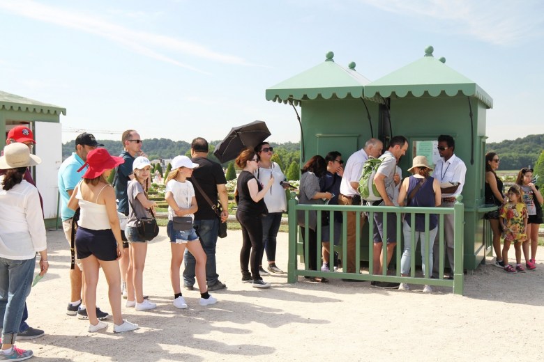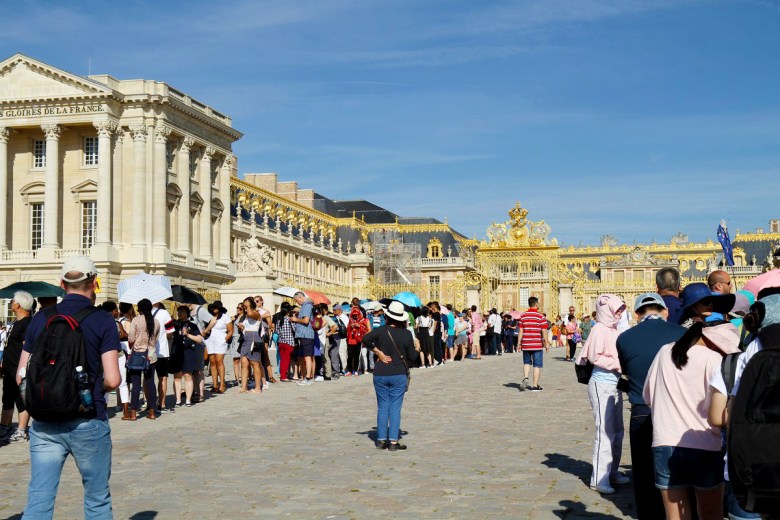 Jämfört med till exempel USA är Frankrike urdåliga på organisering vid turistattraktioner. Istället för att släppa in besökarna i flera kassor så att väntetiden minskar och insläppet sker i ett smidigt flöde, är det en enda entré öppen, trots att slottet och parken har sju miljoner besökare varje år. Det blir många besökare per dag som skall passera entrén och sedan genom säkerhetskontrollen, en i taget. Galet.