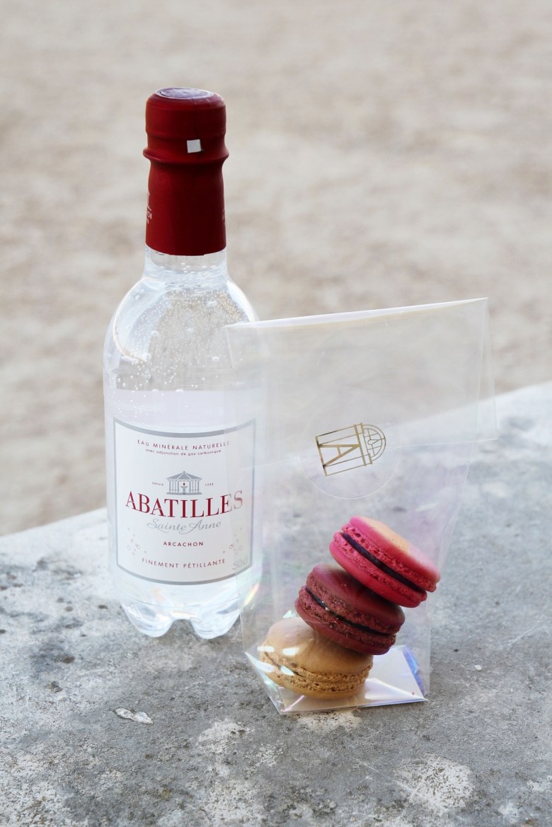 Isabella, som väl är finsmakaren i vår familj, valde en förpackning med tre macarons och en (matchande) flaska mineralvatten. Det slutade förstås med att hon fick äta av min sallad och jag fick smaka av hennes macarons – båda nöjda och glada :)