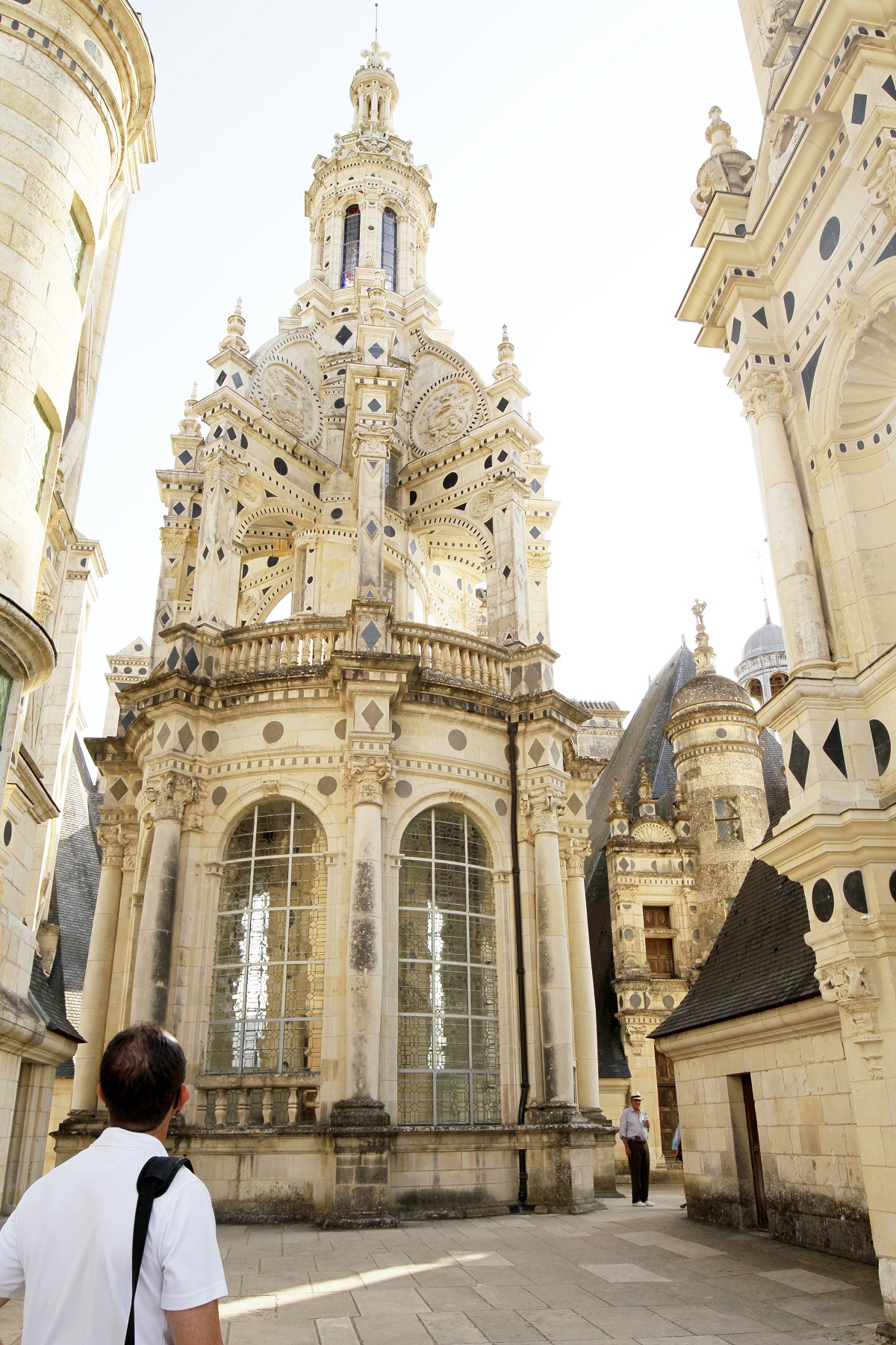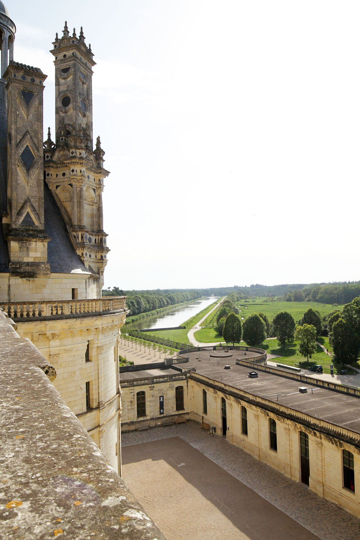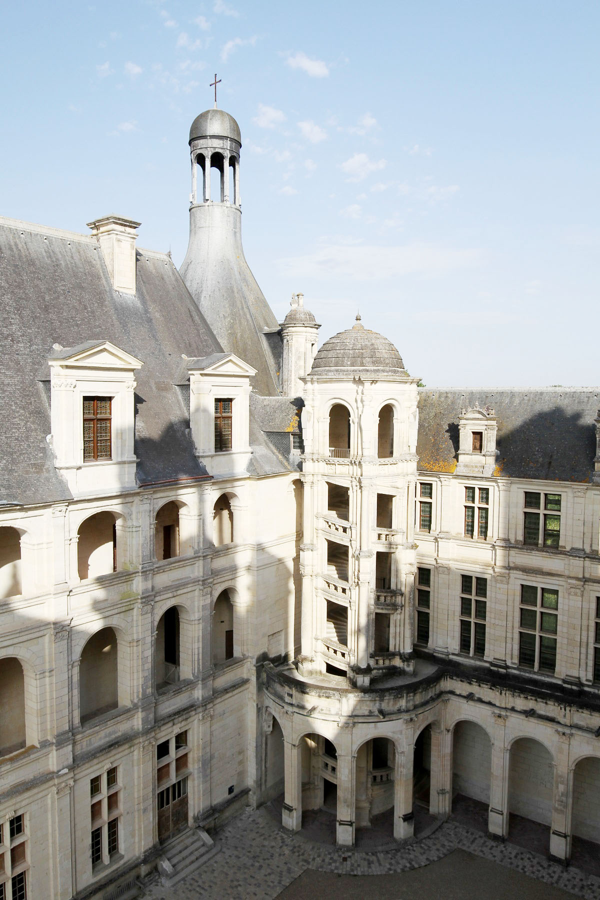 Slottet har en borggård med fyra enorma torn. Jag tycker om att det var byggt så att man förenar inomhus och utomhus. Att kunna gå under tak men ändå få luft, ljus och ljud utifrån genom valven. I praktiken var det nästan omöjligt att värma upp slottet, men det spelade ingen större roll på den tiden, eftersom Frans I bara tillbringade två månader om året i slottet, då han jagade.