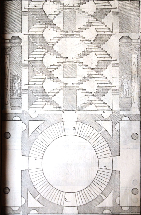 På den här ritningen ser man hur trapporna är byggda som spiraler.