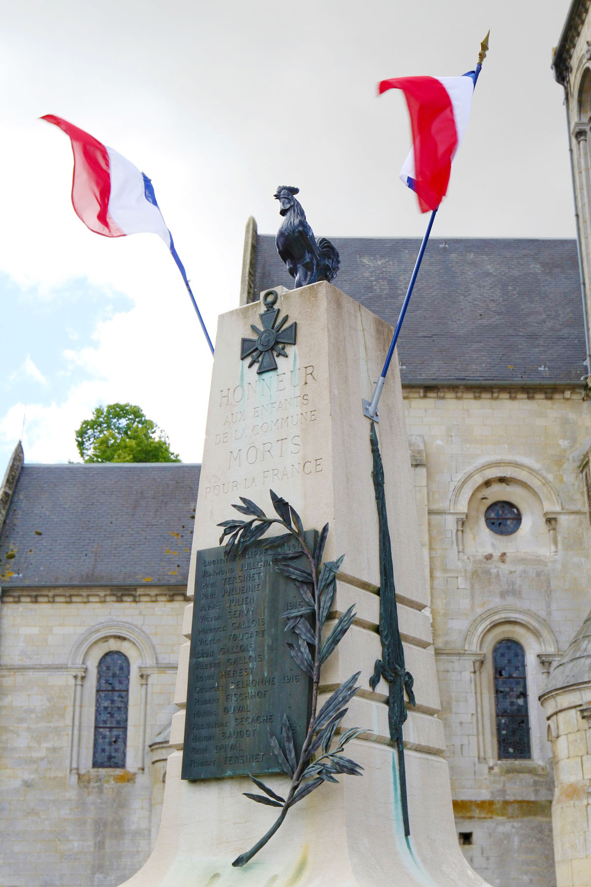 Som när vi åkte igenom en av alla mysiga franska byar, och jag fick se en tupp på en minnessten! Jag ropade rakt ut i bilen att Patrik skulle stanna bilen och köra tillbaka, det här måste ju undersökas närmare!