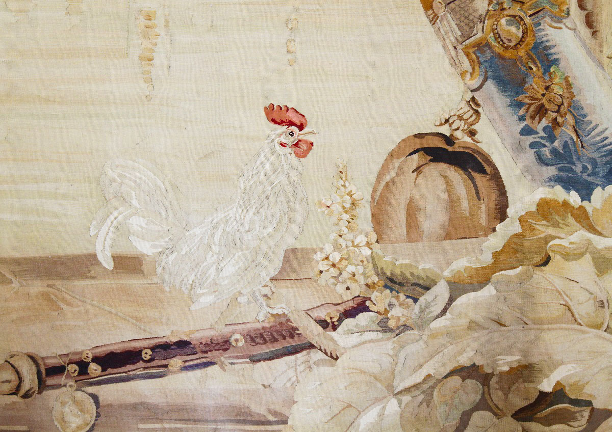 Under vår fortsatta resa såg jag tuppar överallt. Här på en gobeläng i slottet Chenonceau. Tänk att någon eller några har vävt den här, med alla små detaljer. Det här är dessutom bara en liten del av en väldigt stor gobeläng som täckte en hel vägg.