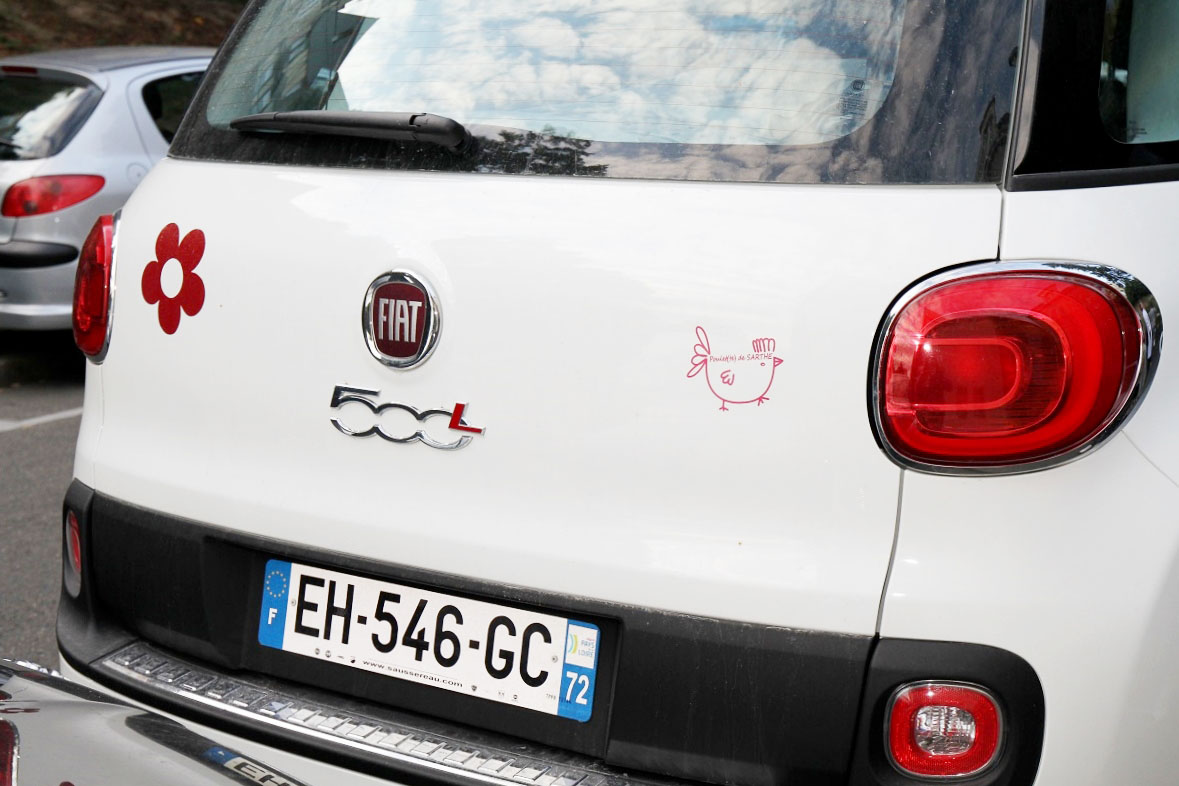 Jag såg till och med en tupp på en bil. Lägg märke till den franska parkeringen… ;)