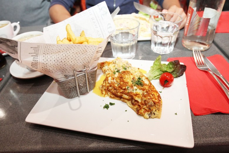 Vi åt lunch i den lilla fiskebyn. Litet annorlunda kombination: omelett med pommes frites, men i Frankrike blir allt gott.