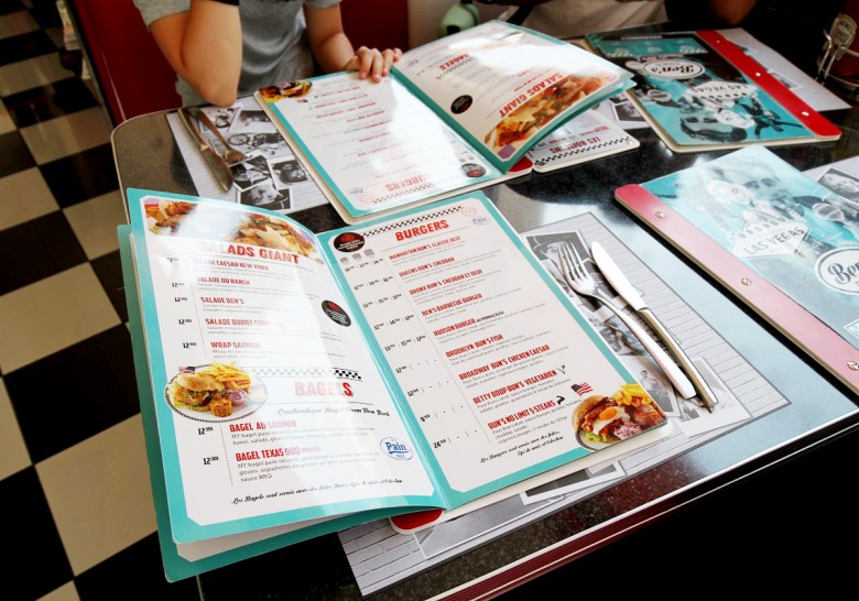 Småroligt att se en amerikansk snabbmatsmeny med beskrivningarna av rätterna på franska.