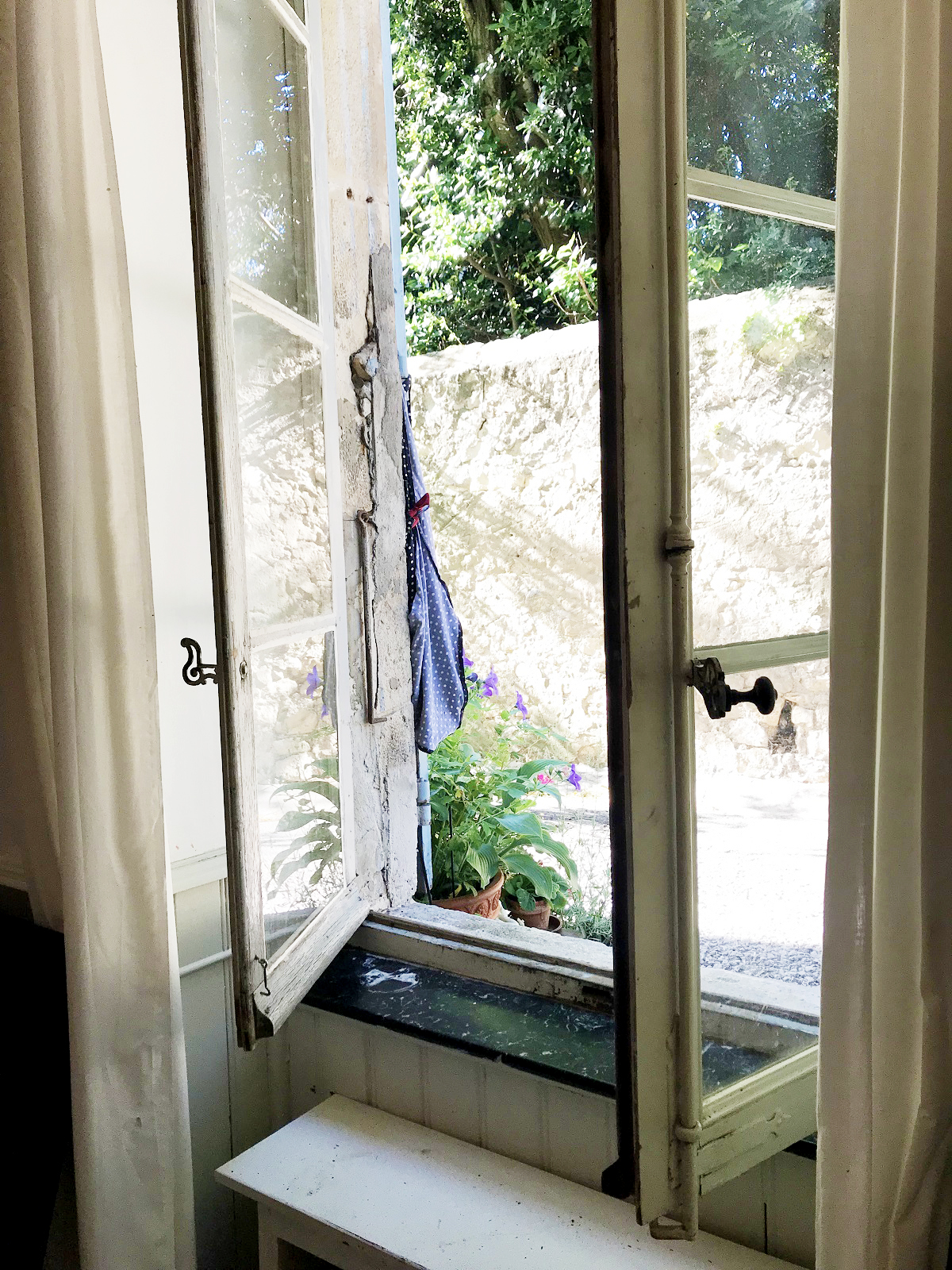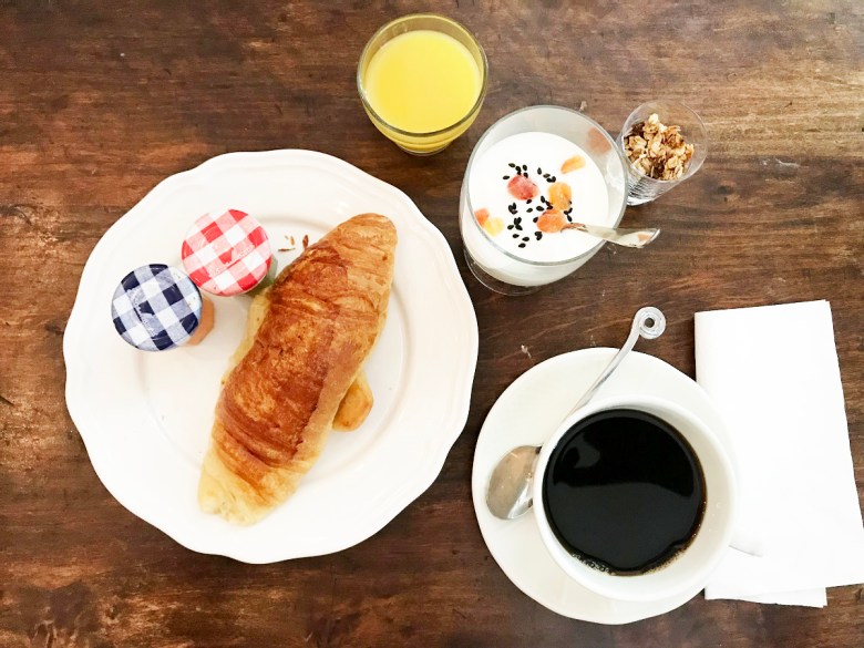 I köket hos Le Flamant Rouge Guesthouse stod fönstret öppet ut mot gatan när vi åt frukost dagen därpå.