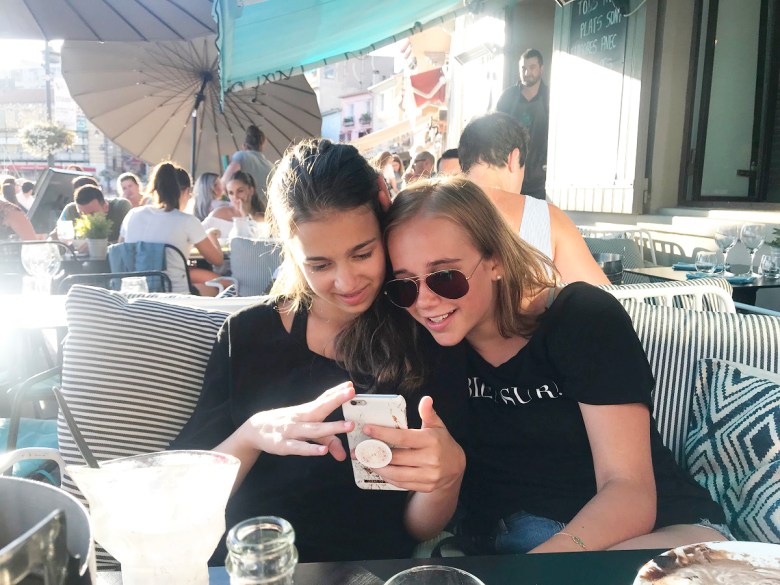 Avrundar inlägget från Cassis med en bild på efterrätten som Jackie och jag delade. Jackie är också på gång att fota. Minns nu vilket otroligt fint mobilskal hon hade, med papegojor.