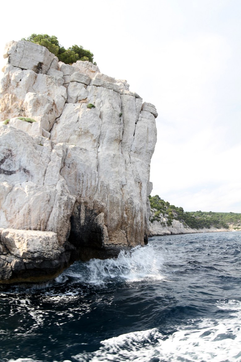 Någon av grottorna som vi såg från båten var Cosquer-grottan. Där finns grottmålningar som är nitton respektive tjugosjutusen år gamla. Ingången ligger idag, på grund av ändrade havsnivåer, trettiosju meter under vattenytan.