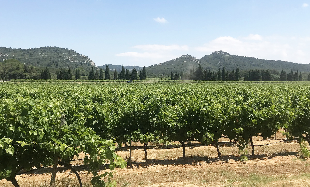 På vägen passerade vi vingård efter vingård, och här var de ute med traktorn. Ser ni dammolnet mitt i bilden?