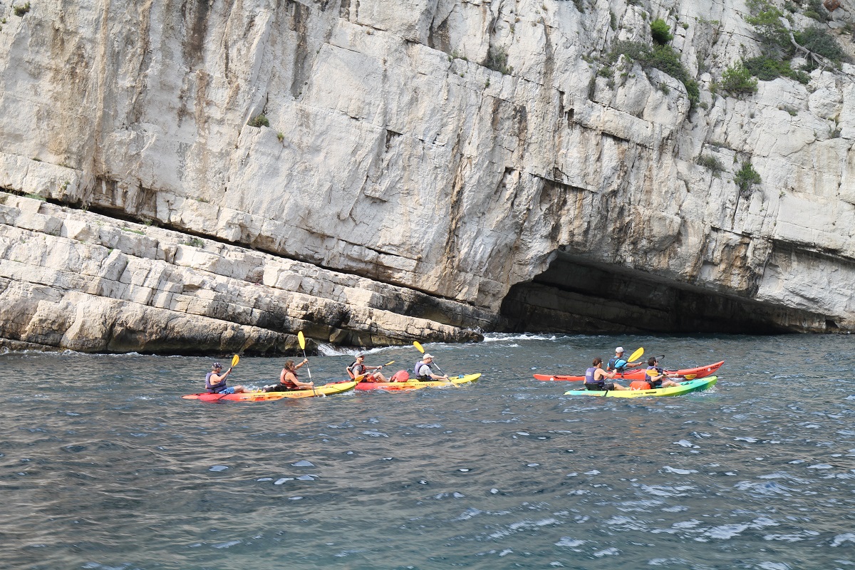 Någon av grottorna som vi såg från båten var Cosquer-grottan. Där finns grottmålningar som är nitton respektive tjugosjutusen år gamla. Ingången ligger idag, på grund av ändrade havsnivåer, trettiosju meter under vattenytan.
