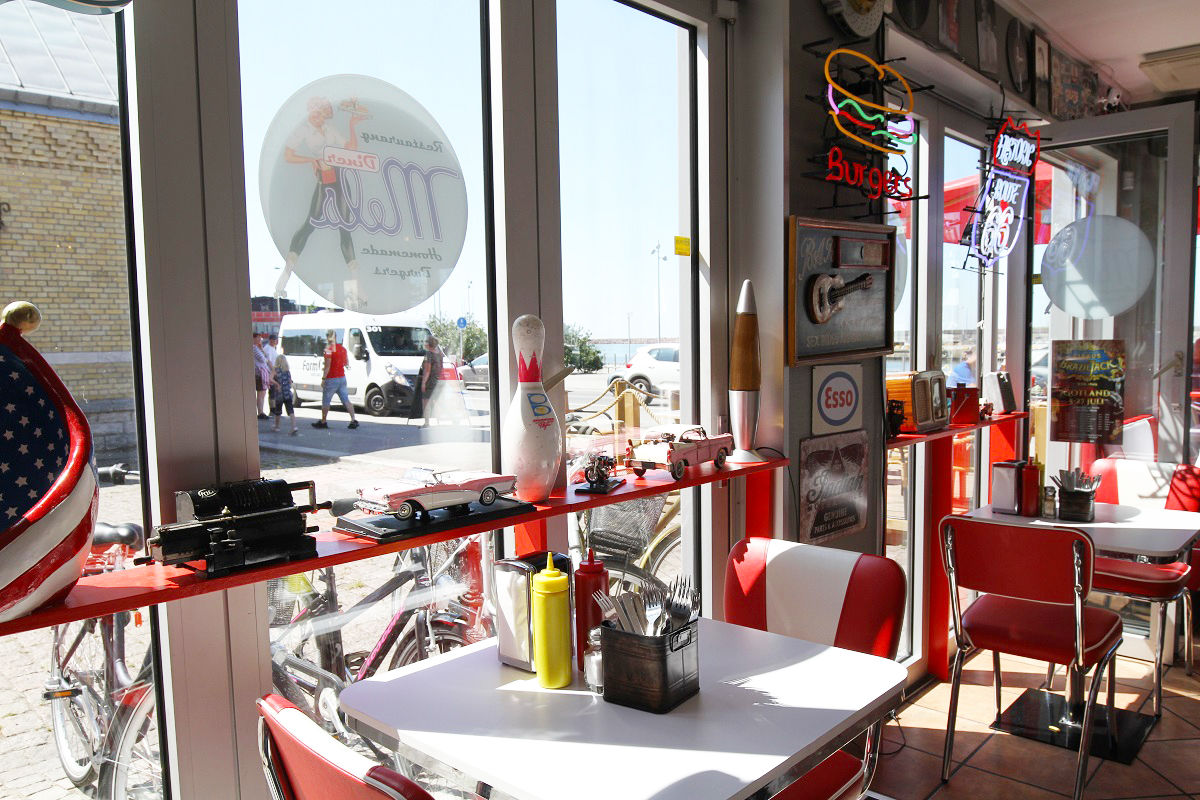 När vi var i Frankrike förra året åt vi flera gånger på en liknande restaurang som den här, så när vi upptäckte att det fanns en här i Visby måste den ju testas: Mels Diner.