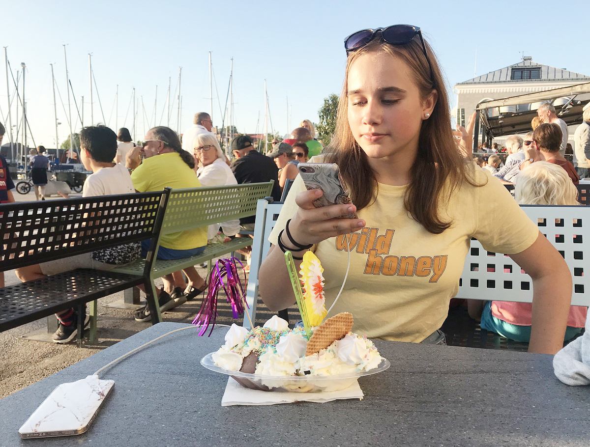 Våra döttrar njuter av livets goda precis som jag. Det här är Bellas glass.