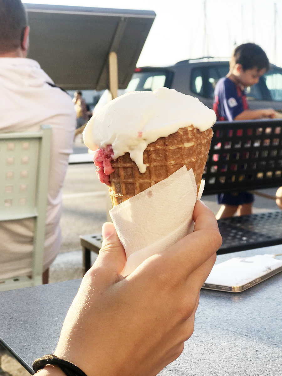 Och det är glass också. Vi hamnade alltid i Visby hamn, antingen för att äta glass i folkvimlet och lyssna på musiken som strömmade ut över hamnen, eller för att titta på solnedgången.
