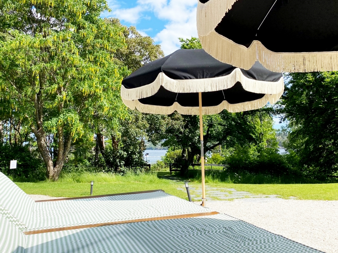 Förra helgen var vi här, på Ellery Beach House som ligger längst ut på Elfviks udde på Lidingö, 18 minuter från Stockholm och ungefär en timme från oss i Gottröra. Det var väldigt enkelt att köra hit, och ju närmare vi kom, desto finare blev omgivningarna med alléer, betande hästar och får. Idylliskt!